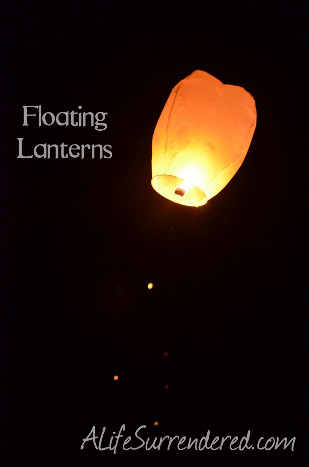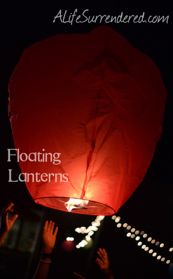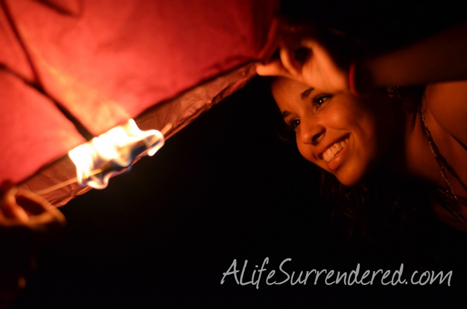 Fire from the floating lantern lighting her beautiful smile and pure joy.
