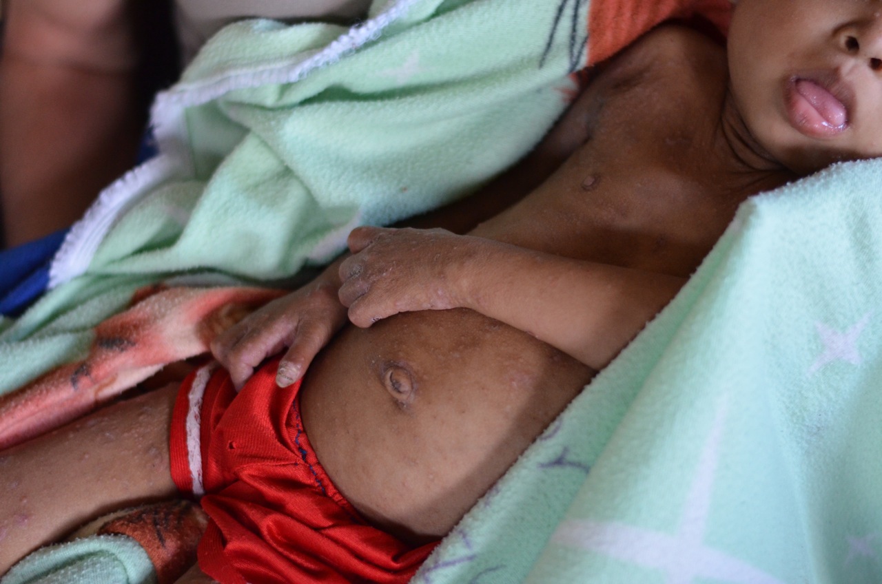 Noel carrying Noe to Hope of Life, to give the life saving treatment he needs, to give him hope for life.