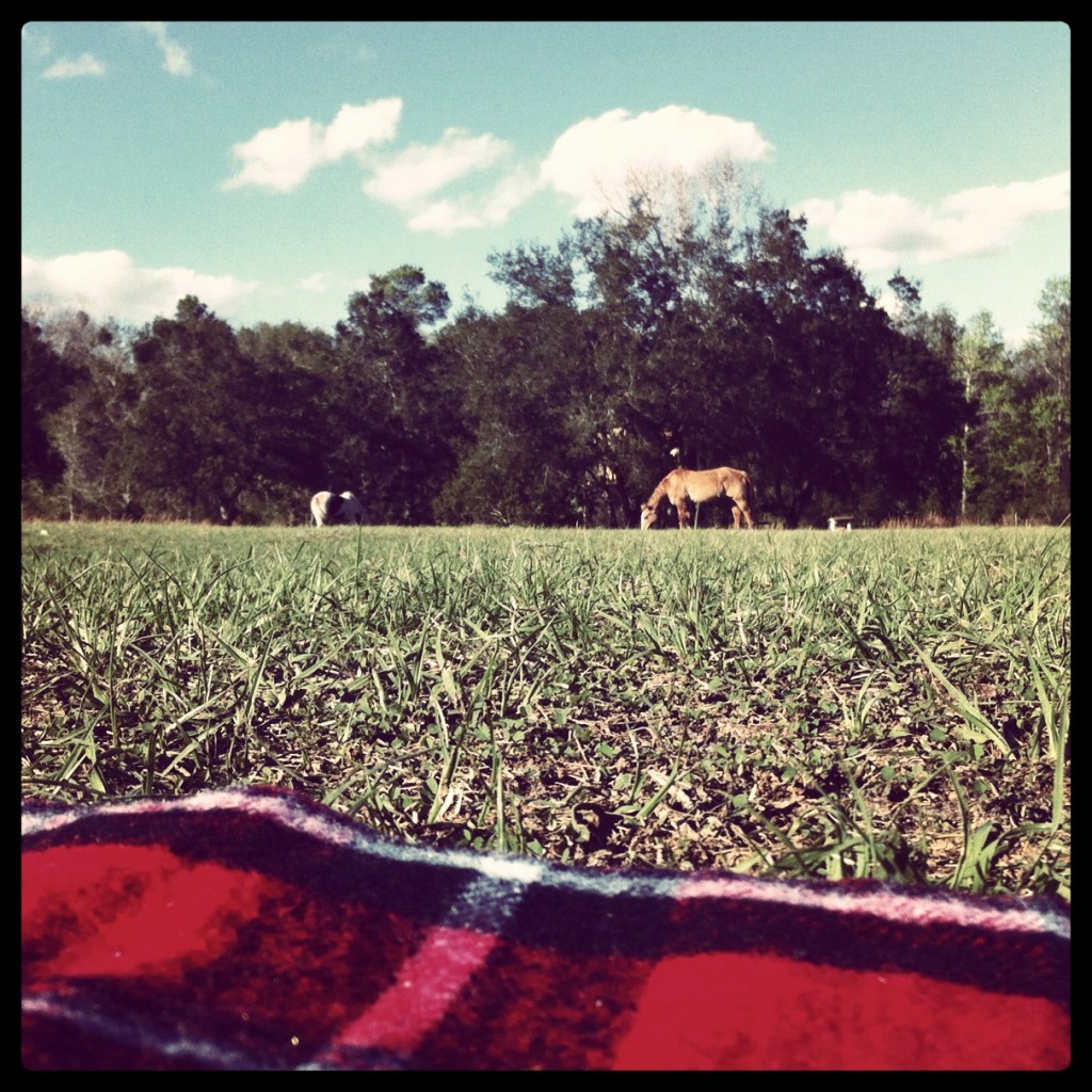 135. lying on a blanket on our grassy field, while reading on a perfectly cool, breezy Florida day