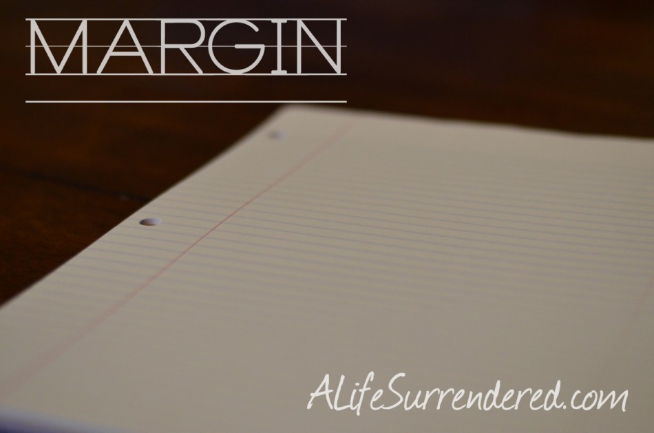 Margin is the gap between rest and exhaustion, the space between breathing freely and suffocating… Margin grants freedom and permits rest. It nourishes both relationship and service. Spiritually, it allows availability for the purpose of God.
